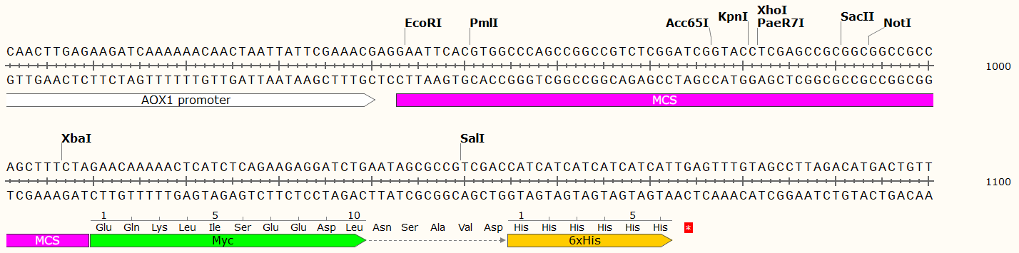 ?5'片段含有AOX1啟動子的嚴格調(diào)控,利用甲醇誘導(dǎo)表達任何感興趣的基因(Ellis等,1985; Koutz等人,1989;tschopp等人,1987A)。