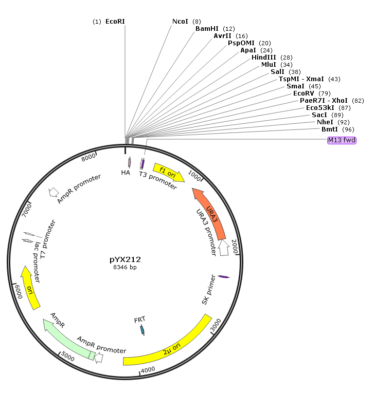 pYX212質(zhì)??梢栽卺劸平湍钢斜磉_(dá),TPI啟動(dòng)子驅(qū)動(dòng)目的基因的表達(dá),C端有HA標(biāo)簽,通過WB實(shí)驗(yàn)可以很方便的檢測基因是否表達(dá)。