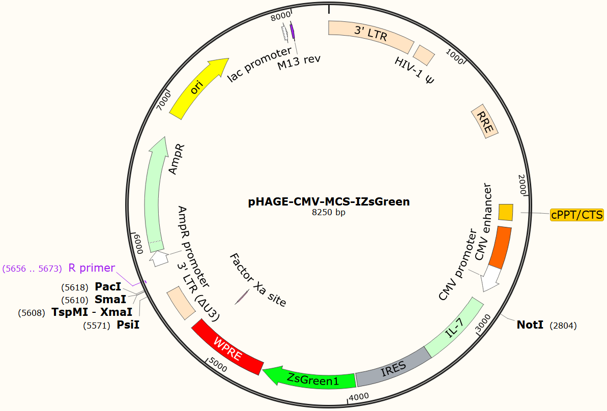 pHAGE-CMV-MCS-IZsGreen為慢病毒表達(dá)質(zhì)粒;microRNA表達(dá)質(zhì)粒。