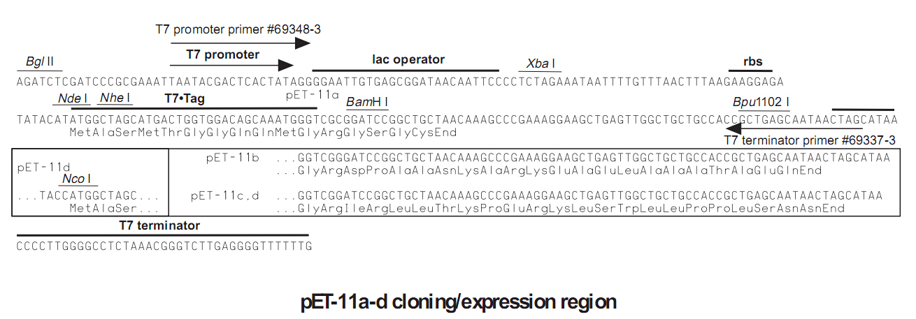 pET-11a,b,c之間僅閱讀框(讀碼框)不同,彼此相差1個bp;pET-11d載體的多克隆位點處不含NdeI切割位點.