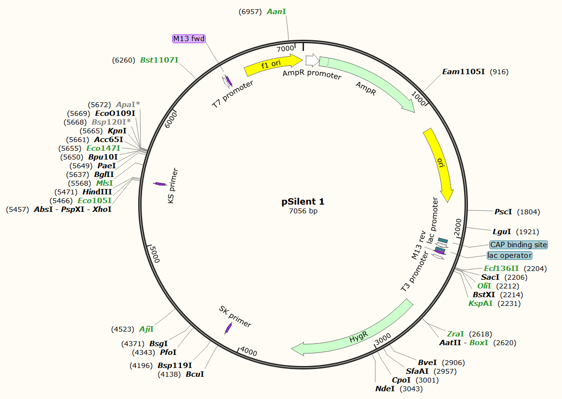 | 5' 測(cè)序引物: | psilentF: ATCGATACCGTCGACCTC |